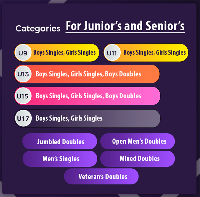U-13 (Boys Singles, Girls Singles, Boys Doubles)